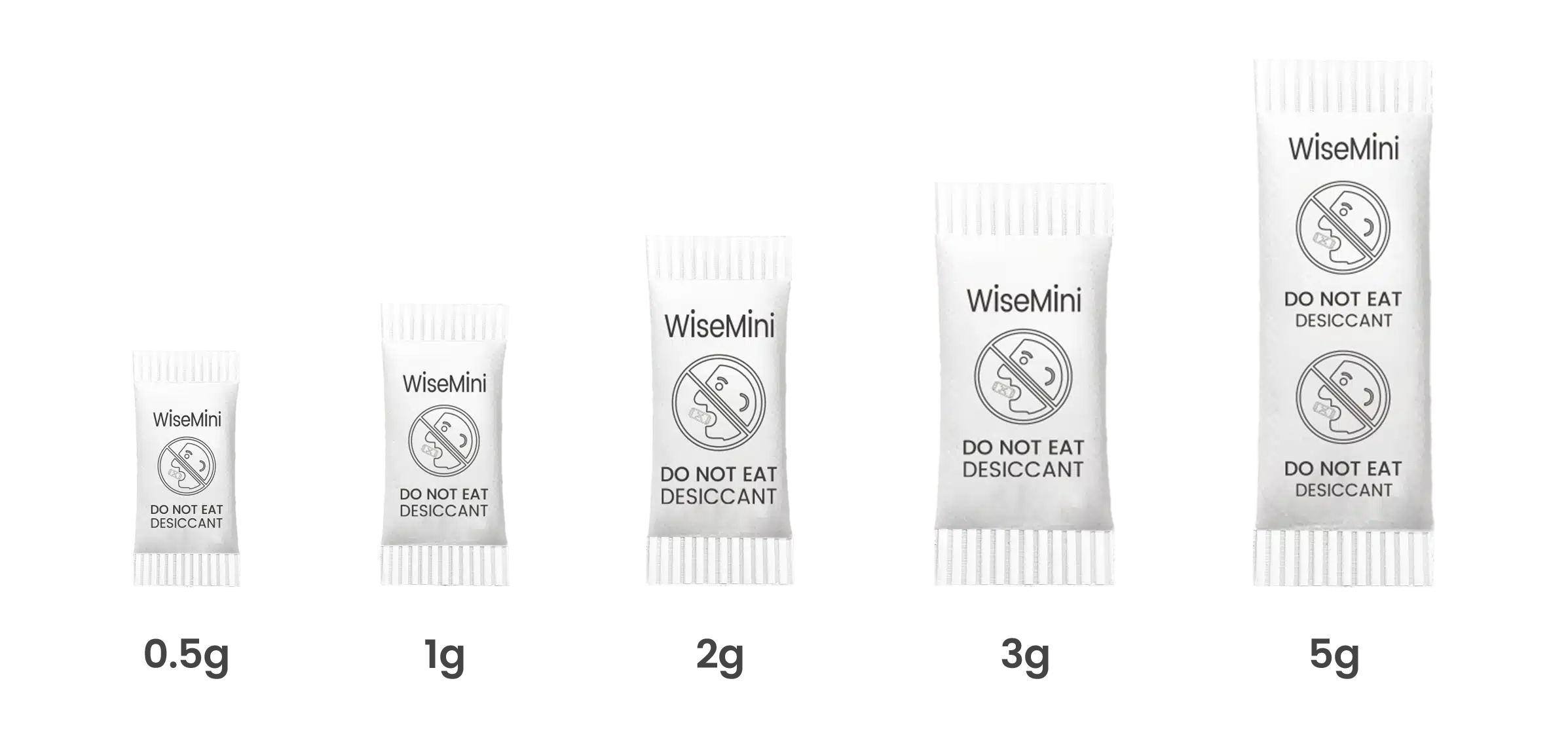 WiseMini Ink-Free Desiccant Sachet utilizes high-quality silica gel and or molecular sieve to meet precise absorption specifications. Its sturdy packaging and innovative laser engraving technology prevent ink migration over time, enhancing safety while minimizing environmental impact. This makes it an ideal moisture-absorbing solution for pharmaceutical applications, with product specifications ranging from 0.25g to 5g to accommodate various needs.