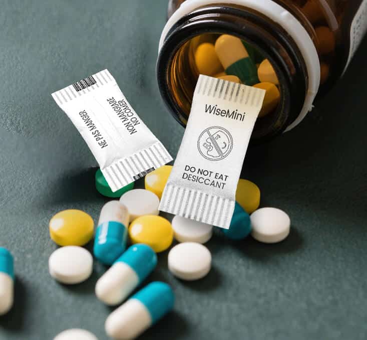 To tackle this issue, we introduced the ink-free & glue-free desiccant sachet. This desiccant does not use any ink or glues, ensuring that no harmful substances will contaminate the drugs. At the same time, it maintains excellent humidity control and oxygen absorption capabilities. It is an environmentally friendly, safe, and non-toxic option, making it the perfect choice for pharmaceutical packaging.
