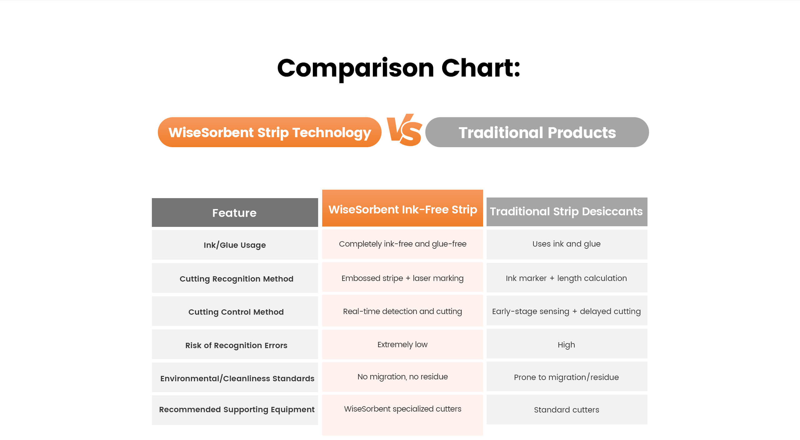 To address the safety and recognition challenges associated with traditional strip desiccants, WiseSorbent has launched three major technical upgrades: